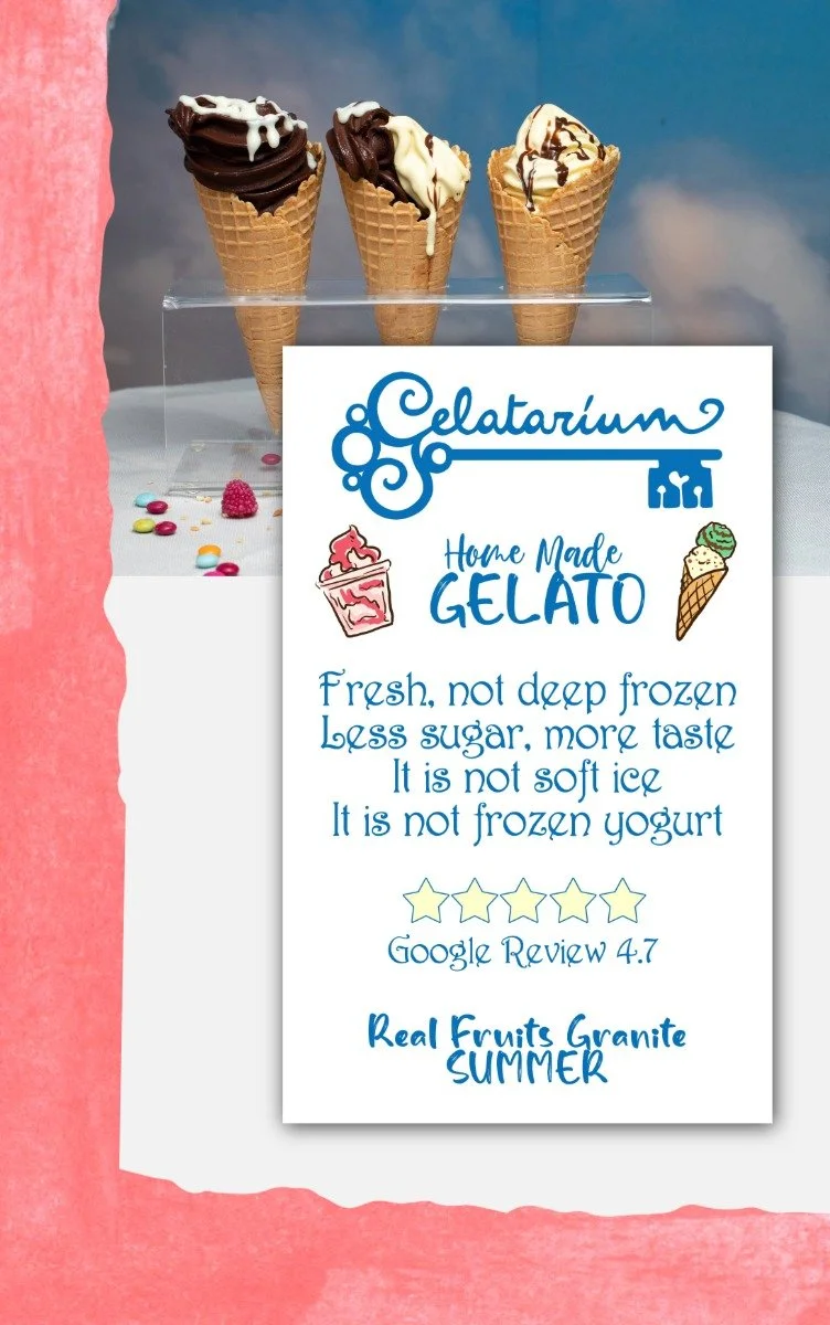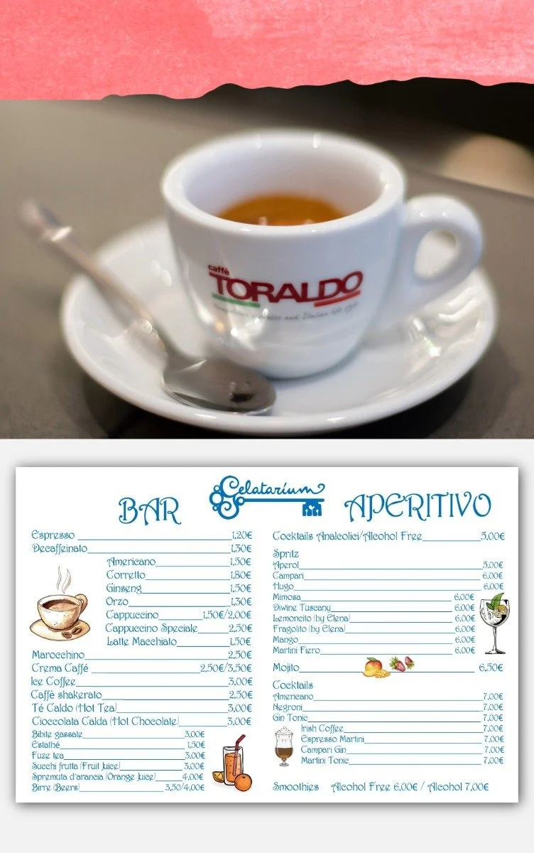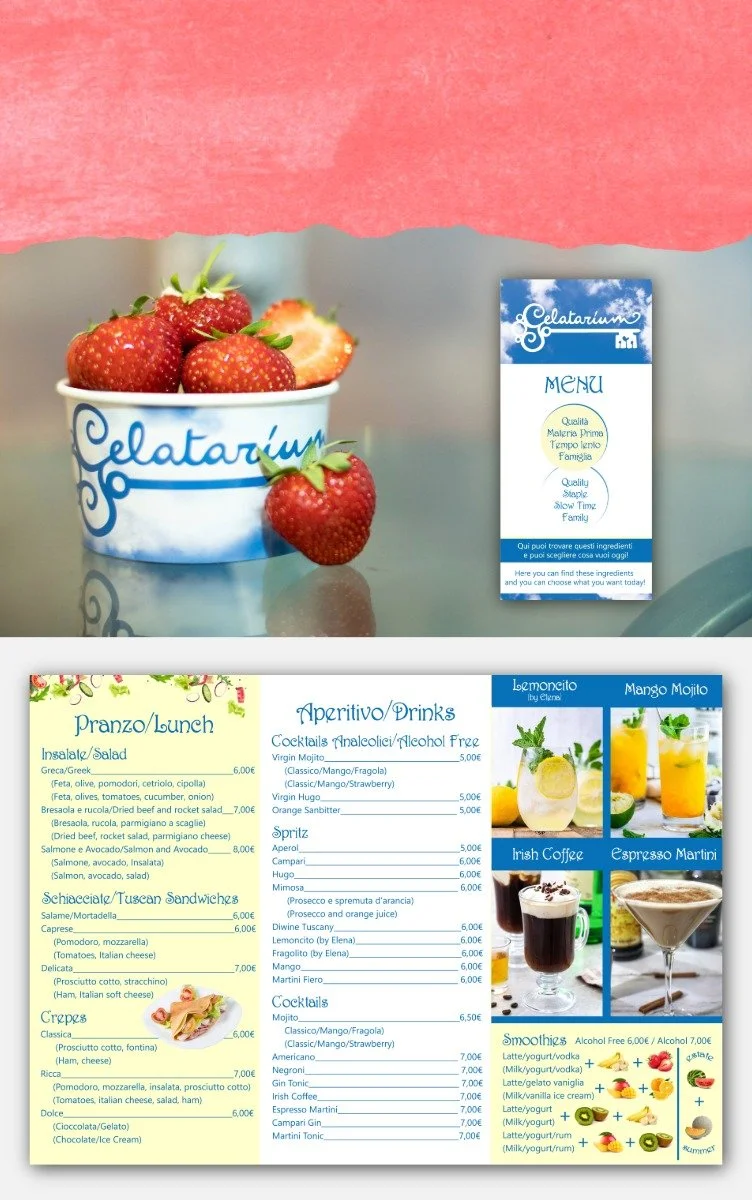 Creation of menus and forex displays for a café/gelato shop in Florence.